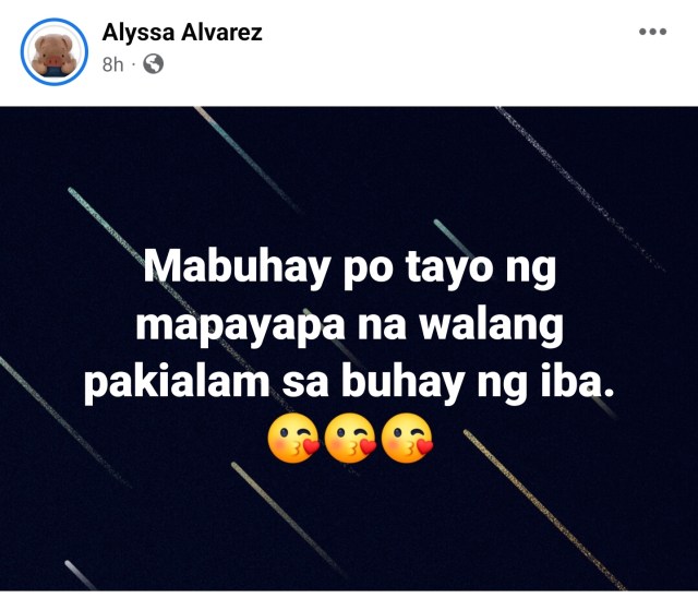 Isa sa post nito ay tungkol sa pakikialam sa buhay ng iba.