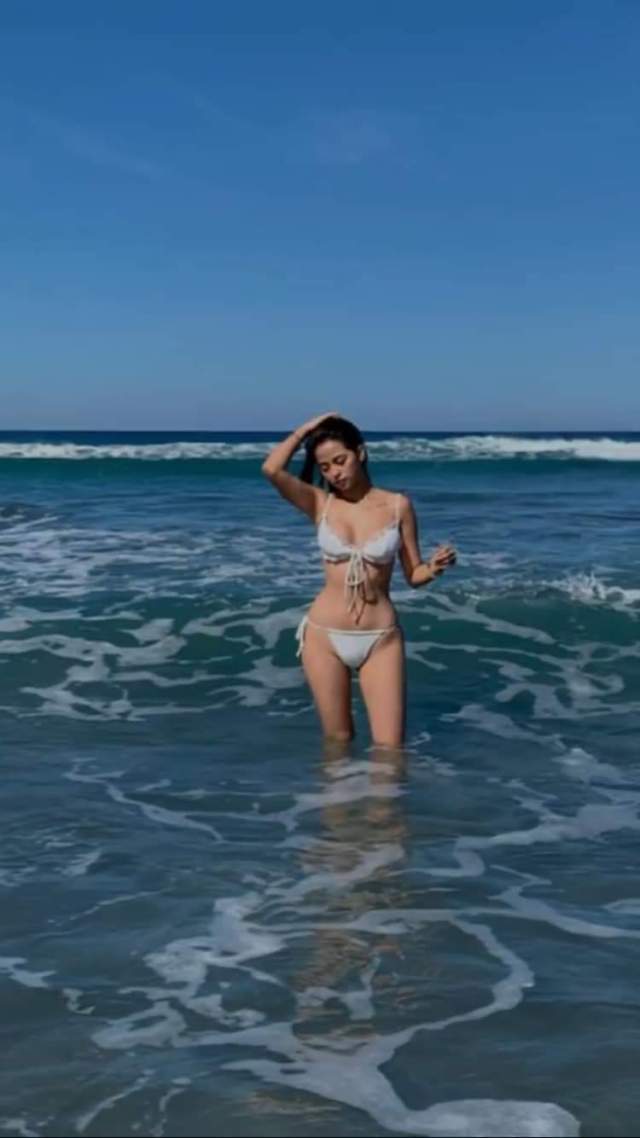 Sa isang Instagram video, ibinandera niya ang kaniyang seksing pangangatawan habang nakasuot lamang ng isang two-piece swimsuit.