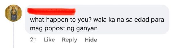 “What happen to you? Wala ka na sa edad para mag popost ng ganyan”