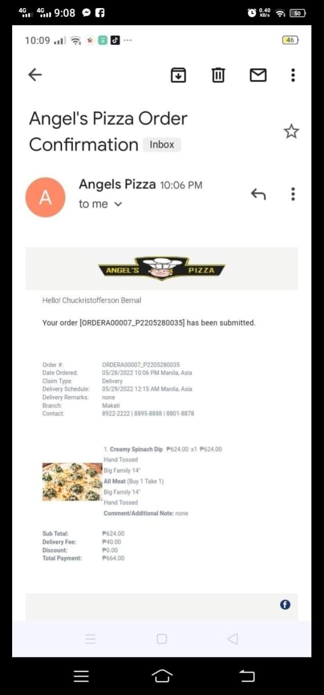 “Anyare Angel’s Pizza ?!.. nung may pa nmen inorder to ngaun nio lang dineliver ?!.. mag ti3months na xa.. may 29 pa kme umorder tapos aug. 20 ngaun lang dumating.. hahaha…