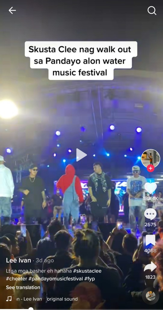 “Skusta Clee nag walk out sa Pandayo alon water music festival.”